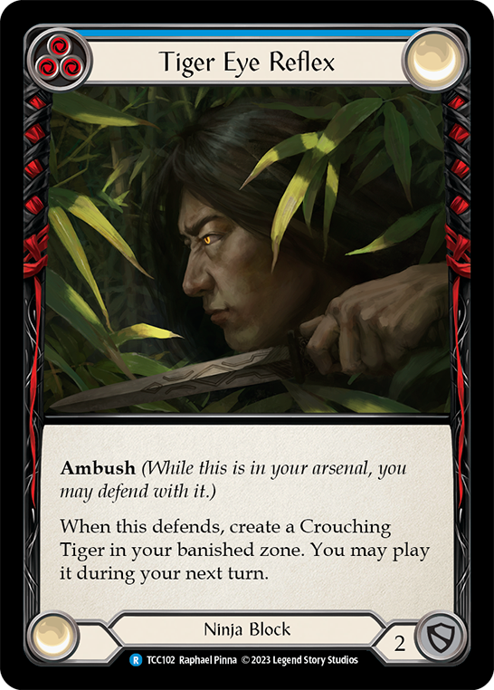 Ambush (While this is in your arsenal, you may defend with it.) When this defends, create a Crouching Tiger in your banished zone. You may play it during your next turn.
